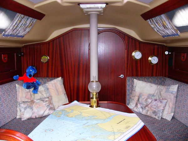 ich habe ja das gleiche Schiff, auch Bj. 1993. Wie ich sehe, ist auch bei Deinem Schiff die Innenschale im Salon vergilbt. Hast Du schon mal überlegt, da was zu machen? Einfach weiß Lackieren wäre mir zu eintönig. Ich habe bisher noch keine Möglichkeiten gesehen, dass man bei Lackfarbe auch Strukturen in die Oberfläche hineinbringen kann. Bei Wandfarbe gibt es so etwas, aber die kann man ja wohl nicht verwenden.