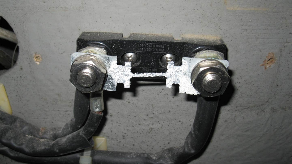 Nach dem Abschrauben fand ich dann die Reste der Hauptsicherung und so funktioniert sie immer noch.