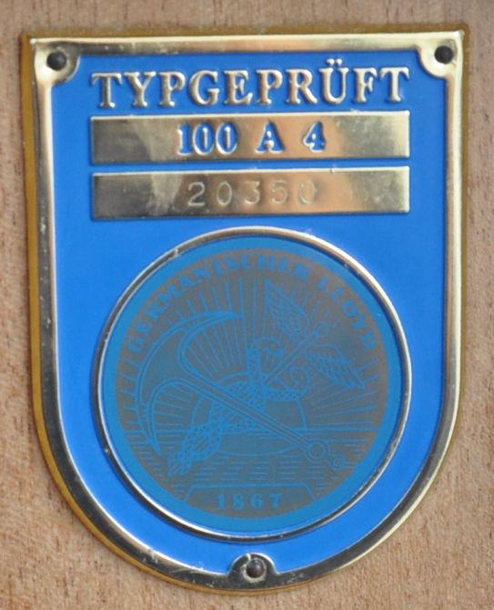 An selbiger Stelle ist bei mir eine Plakette in gleicher Form, allerdings silberfarbig. Es handelt sich um das Zertifizierungsschild vom Germanischen LLoyd.Stretta hat geschrieben:...