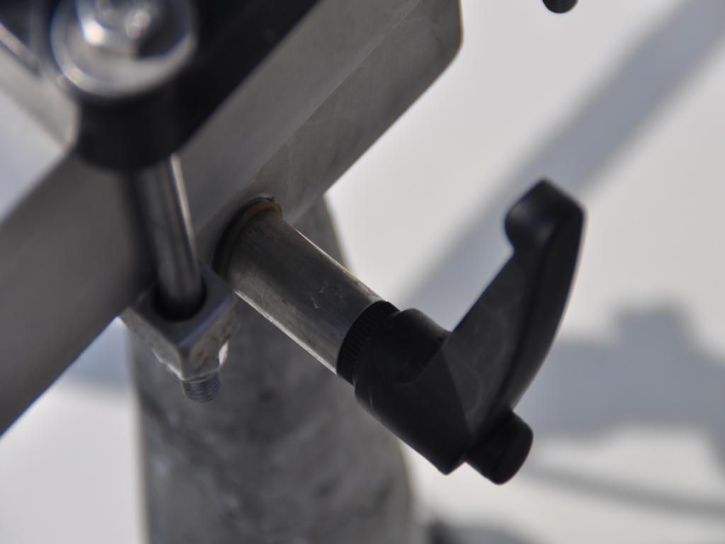 Anbei die von mir geänderte Version mit Knebel. Lässt sich erheblich leichter bedienen. Der Knebel lässt sich im festgezogenen Zustand durch drücken des Knopfes in der Mitte, in jede beliebige Position drehen. Ob und wie lange der Hebel hält, weiß ich allerdings noch nicht.