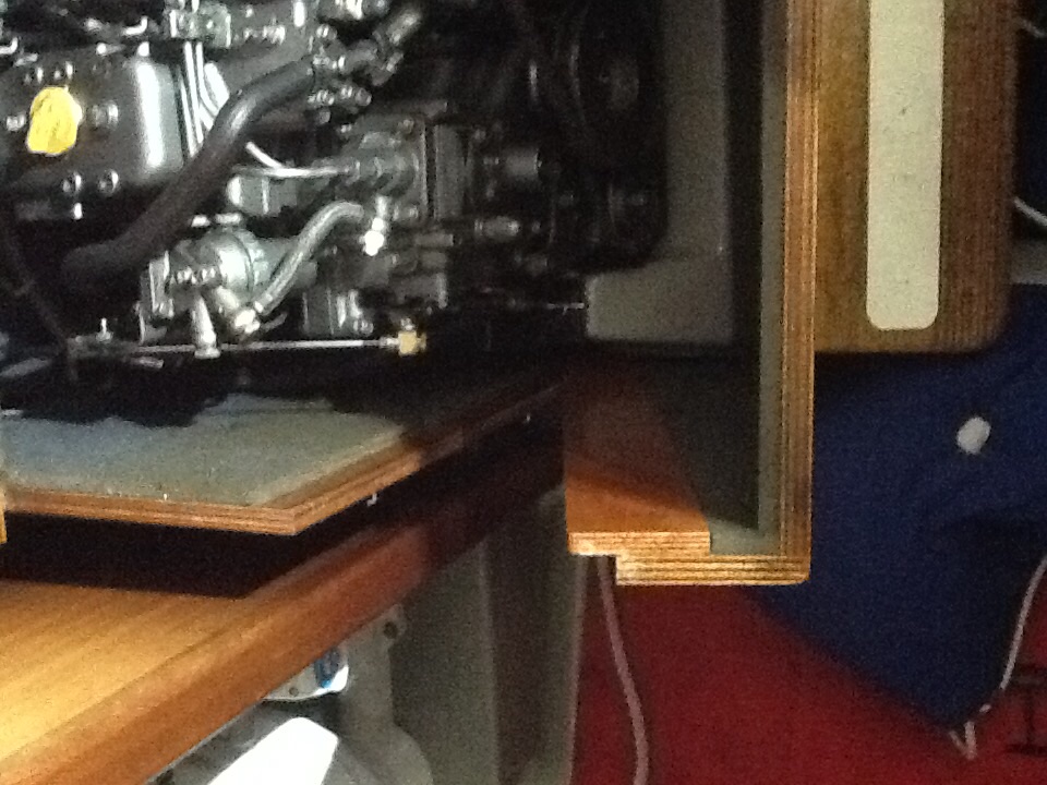 mein Motorkasten ist geteilt, allerdings an den Seiten ungefähr mittig. Befestigt sind die Teile mit vier Kistenverschlüssen. Es knarzt nicht. Wichtig ist natürlich, dass die Verschlüsse stramm geschlossen werden können.