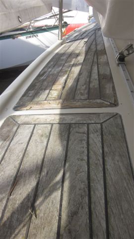 Bei unserer Duetta 94, Bauj. 86, löst sich das vorhandene Teakdeck auf.Fotos 5, 11, 13.