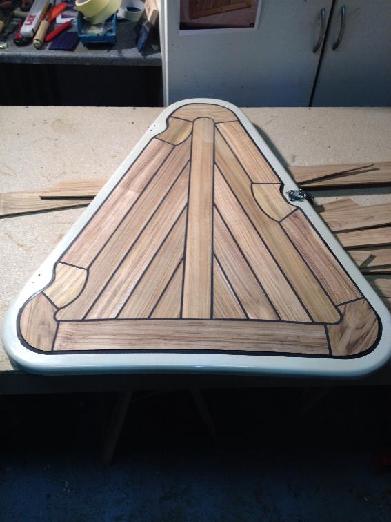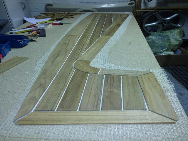 Tolle Arbeit, das sieht sehr professionell aus. Ich habe bei meiner 28 S im vergangen Frühjahr auch ein Teakdeck verlegt, allerdings mit vorgefertigten Modulen. Die Vorbereitungsarbeiten waren aber dieselben: alten Belag entfernen, Kleber abschleifen, Schablonen herstellen. Es geht doch nichts über ein schönes Teakdeck. Die PCV-Immitate habe ich mir auf Messen auch angesehen, gefielen mir aber nicht. Noch viel Erfolg und Ausdauer im Winter.