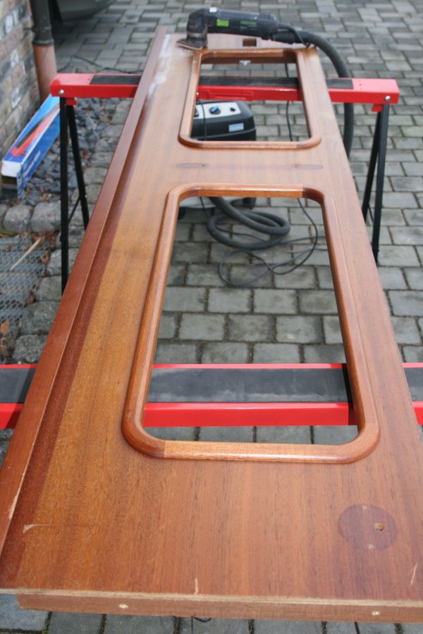 Ich habe gerade die demontierbaren Holzteile ausgebaut, um sie abzuschleifen und neu zu lackieren.