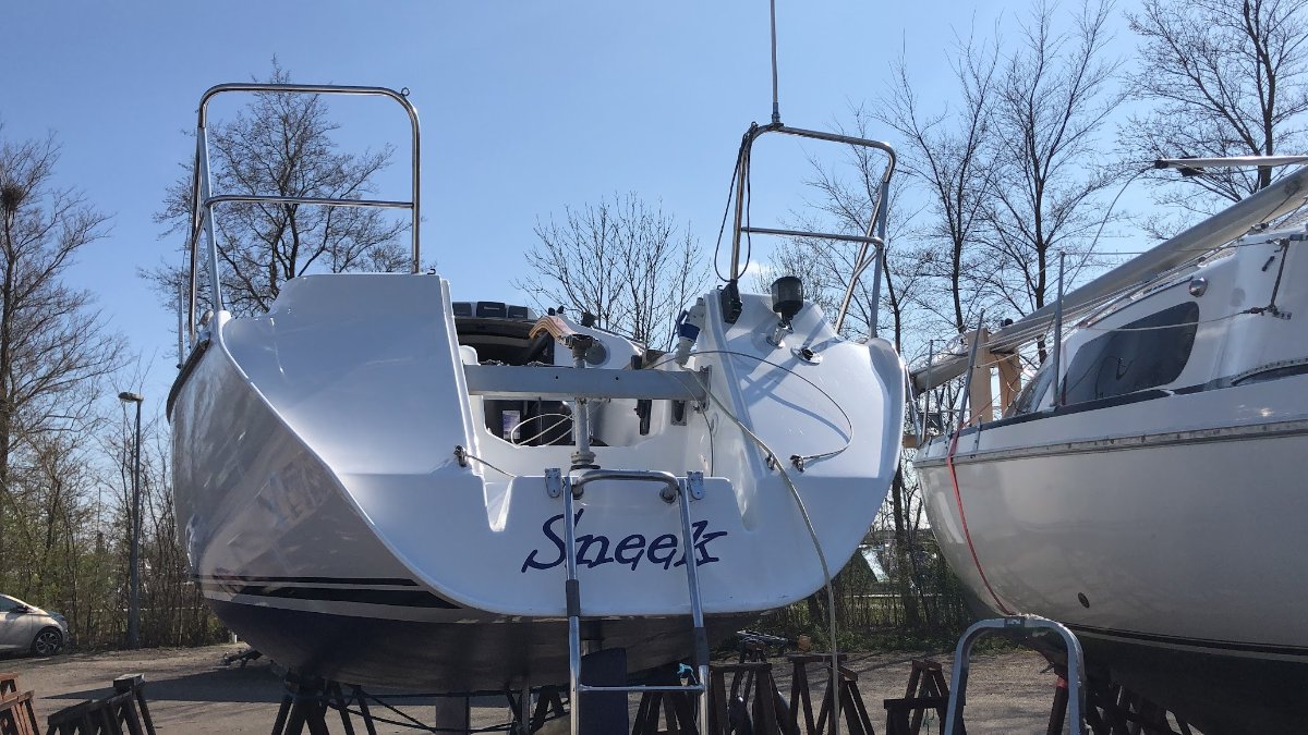 Unsere Eberspächer Dieselheizung läuft immer noch. Leider ist die Position des Borddurchlasses im Heckspiegel ( mit einem ca. 20cm hohen Auspuffs mit Pilzhaube) sehr unglücklich. Die Achterleinen sind nur schwer über kreuz zu legen.