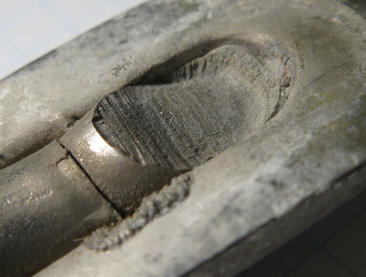 Der Dauerbruch könnte in jedem Lehrbuch als Beispiel aufgeführt werden: Anriß, Dauerbruchfläche mit Rastlinien, Gewaltbruchfläche.