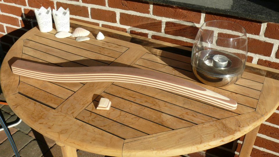 s-förmig lamellierte Pinne aus Mahagoni und Esche nach Wunsch