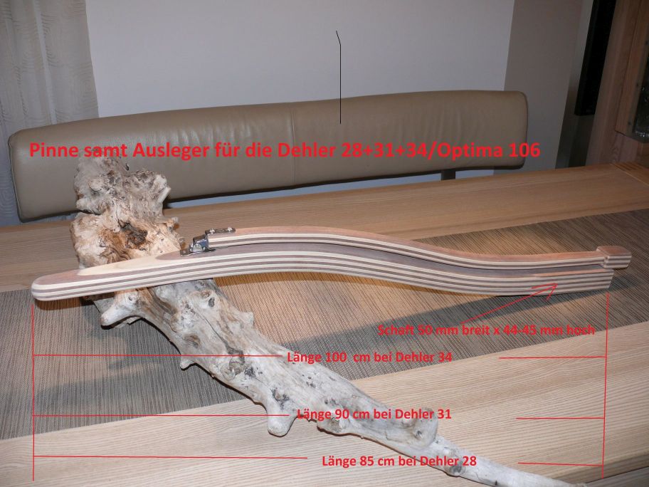 Die Fotos stammen von einer Pinne der Dehler 34, hier ist die Pinne 100 cm lang. Füt die 31er baue ich üblicherweise 9+0 cm lang, für die 28er 85 cm lang.