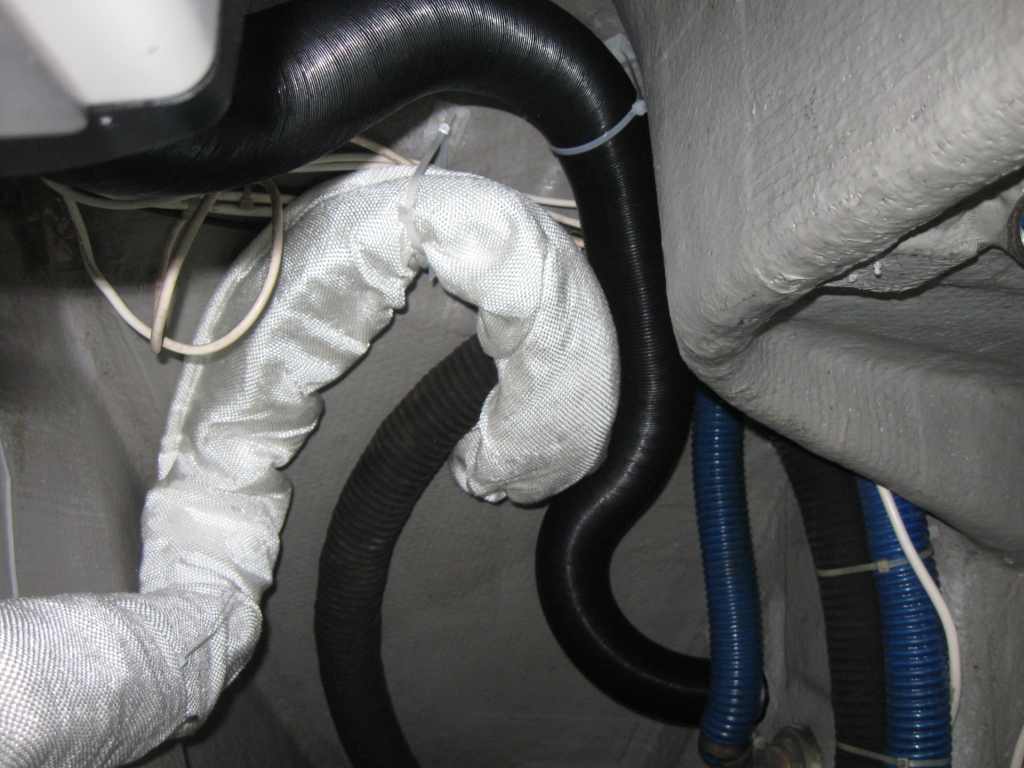 Da sich bei mir die gesamte Installation auf einer Seite (Steuerbord) befindet, sind auch die Wege einigermassen gerade, wodurch der Luftstrom auch einigermassen ungehindert strömen kann.