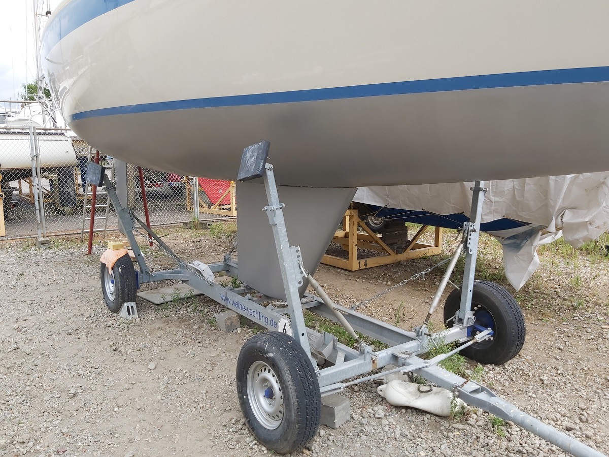 ich möchte meinen Hafentrailer (6 km/h / ungebremst) der Marke Weihe-Yachting verkaufen. Der Trailer ist Baujahr 2013, Zustand gut. Eine Besonderheit der Weihe-Trailer sind die verstellbaren Kielunterlagen, welche die Bearbeitung der kompletten Kielunterseite ermöglichen.