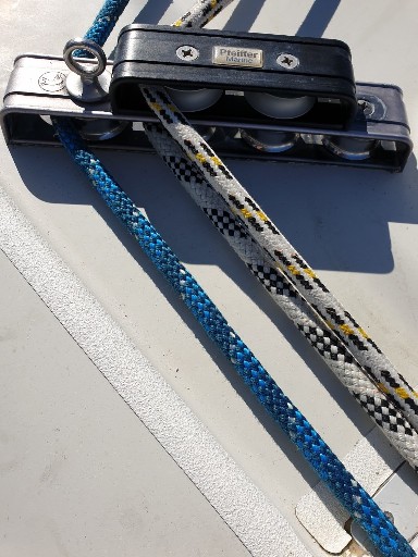 Auf die Umlenker auf dem Kajütdach habe ich eine "2 Etage" geschraubt, mit jeweils 2 Rollen vom gleichen Hersteller, dann müssen nur die Schrauben gegen längere ausgetauscht werden.