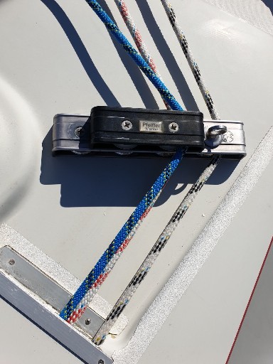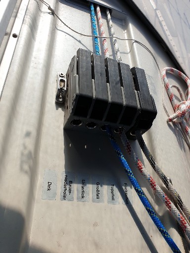 Die bestehenden Klemmen sind soweit alle belegt, Großfall, Fockfall, SWFock, 2 Reffs, Dirk, Niederholer, Unterliek ..