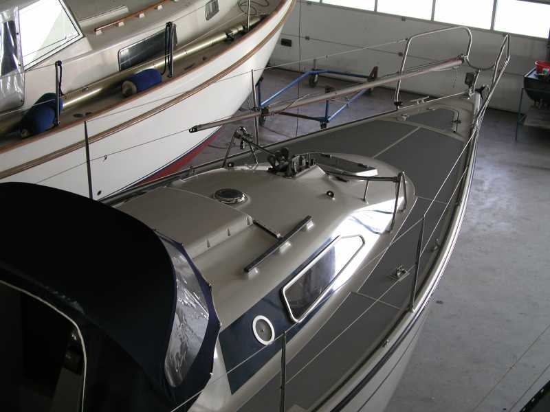 Tip! Interdeck von International in weiß besorgen und im Fachgeschäft auf den gewünschten Farbton (meistens grau) abtönen lassen. Vielleicht vorher mit einer Farbkarte zum Boot gehen und den passenden Grauton raussuchen. Das Grau selbst von Interdeck ist für meinen Geschmack zu dunkel. Gummigranulat untermischen ist eigentlich nicht notwendig. Interdeck ist eigentlich rutschfest genug.