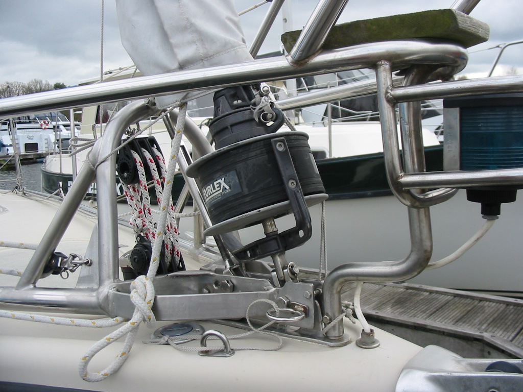 das gab es bei Dehler mal ab Werft. Auf meinem Boot ist eine Dehler-Mastlegevorrichtung montiert. Sie besteht aus zwei Niro-Bügeln, die auf den Seitendecks montiert sind, damit der Drehpunkt für die Hilfswanten auf die gleiche Höhe kommt wie der Drehpunkt des Mastfusses.