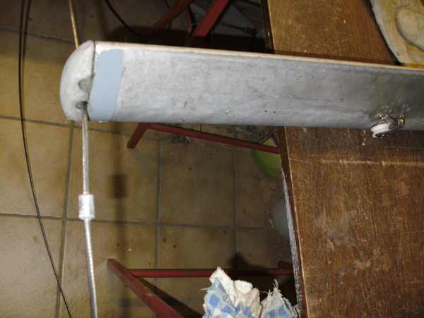 Derzeit laufen die Wanten total ungeschütz gegen Knicke an der Saling vorbei. Die eine Wante hat auch schon einen Knick.