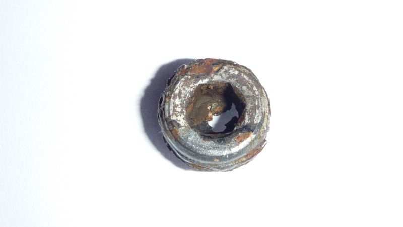ich habe am Wochenende in der Wanne unter dem Motor ca. 2l Wasser entdeckt und war erstmal etwas erschrocken. Habe dann aber schnell die Ursache dafür gefunden. Das Wasser leckte aus einer Schraube am Motorblock. (Foto) Diese Schraube schließt fast mit dem Motorblock ab und besitzt einen Innensechkant. Ich habe dann versucht die Schraube zu lösen und hatte ohne großen Kraftaufwand ein Rest der Schraube in der Hand. (Foto) Der Rest ist offensichtlich völlig abgegammelt. Das Gewinde im Motorblock ist frei.