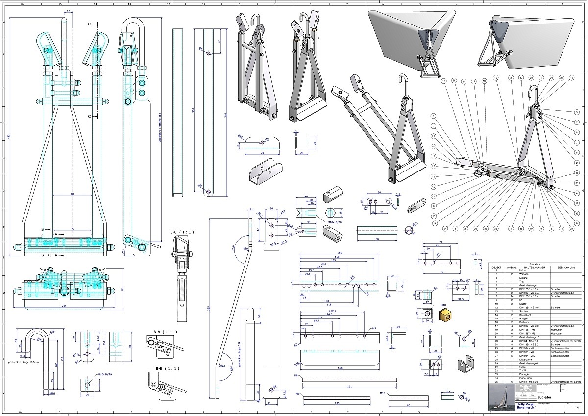 So, die Bugleiter ist fertig, alles aus Baumarktteilen und aus Zeug, was noch so im Keller rumlag.