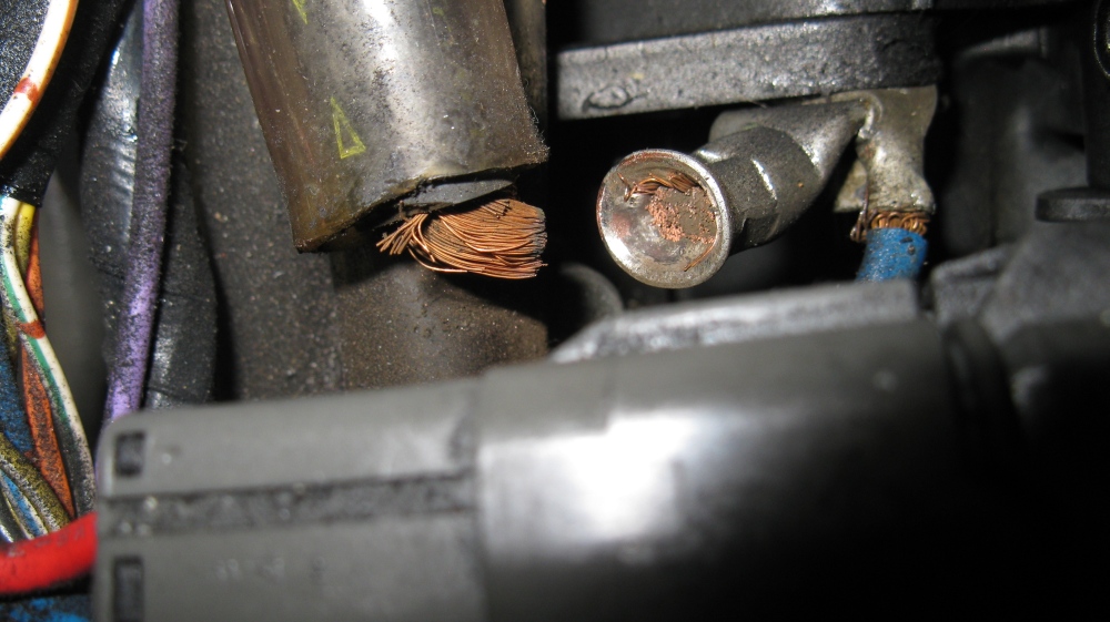 Die Kontrolle bringt es dann schnell an den Tag ... Kabelbruch im Kabelschuh des 35mm² Massekabels direkt am Motor.