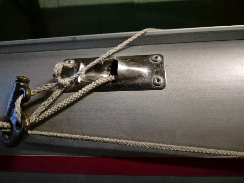 Ich habe den hinteren Teil des Unterliekstreckers gelassen wie er ist (Draht) und nur an der Taille im Baum eine neue Leine befestigt, die an der vorderen ...