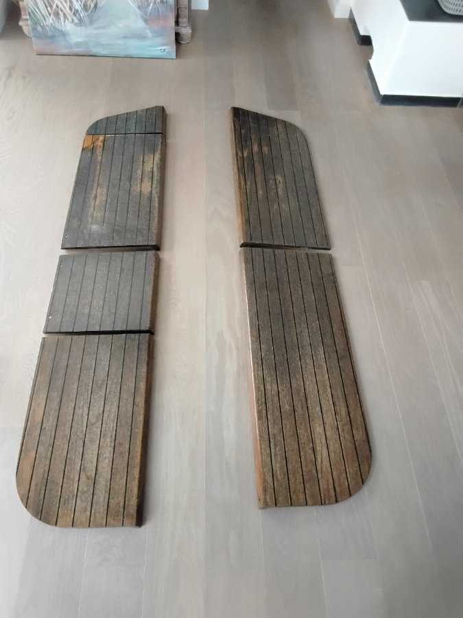 Wir haben für unsere Dehler 31, Daten: Bauj. 1991 und Pinnensteuerung, neue Sitzbänke im Cockpit bekommen. Die demontierten sind alle noch in Ordnung ( Backskistendeckel wurde an einer Ecke mal repariert ) und können als Ersatzbänke / oder als Unterbau zum Neubelegen mit Teakstreifen genutzt werden. Hier hätte man alle Maße als Schablone. Es sind die originalen Dehler Holz Ausführungen aus Freienohl.
