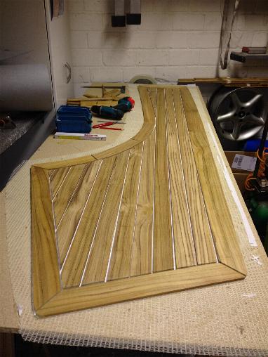 Wir haben uns mit einigen Ersatzmaterialien beschäftigt, Kork, Easyteak oder Kunststoff, und uns wieder für echtes Teak entschieden.