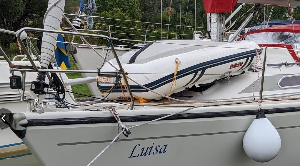 Moin, an meiner Dehler 32 habe ich mein Schlauchboot (2m Länge) hinten quer am Heck befestigt. Beim hochziehen „klemme“ ich die Badeleiter unter einem Schwimmer, danach ziehe ich mit der Bug- und Heckleine vom Schlauchboot das Beiboot hinten ans Heck hoch. Danach sichere ich dann das Beiboot mit einem Sqanngurt am Heckkorb. Man kann das Schlauchboot auch Hochkant am Heck befestigen und sichern. Ich habe eine Umlenkrolle am Achterstag befestigt und da kann ich das Beiboot hochziehen und wieder mit einem Spanngurt sichern.