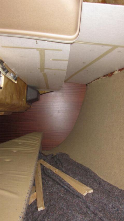 Der Voreigner hatte versucht mit langen schmalen Textilstreifen die Kajüte zu bekleben, was allerdings auf Grund der vielen Rundungen und Bögen ziemlich amateurhaft aussah. Also runter damit, die 1. große Baustelle.
