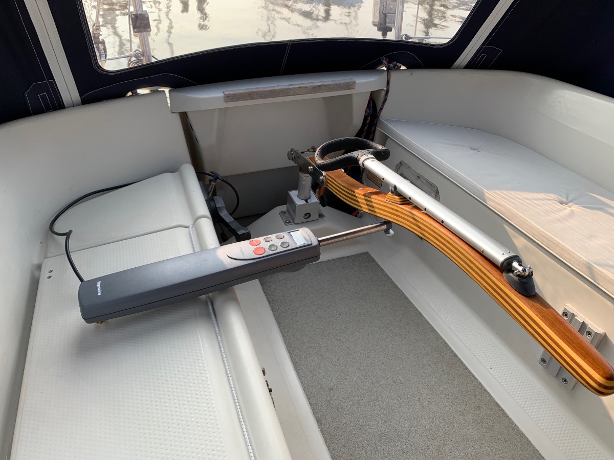Es geht um den Bereich zwischen Niedergang und Esstisch, bzw. zwischen Pantry und Navi-Tisch. Genau liegt die betreffende Stelle mittschiffs kurz vor dem Übergang auf den höheren Boden im Bereich des Esstischs.